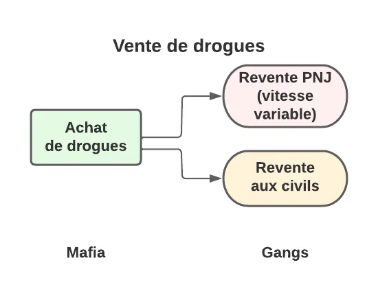 | Vente de drogue douce | PNJ appel boss | Vol de véhicules Classic |