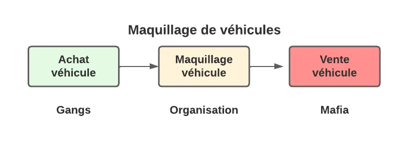 | Achat d'armes 7,62 | Achat de produits chimiques | Revente de véhicules Sport |