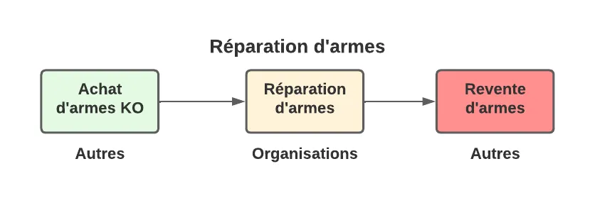 Pour faire du business, l'organisation doit interagir avec les autres acteurs de l'illégal (gangs, mafias). Elle peut vendre les munitions achetées auprès du fournisseur, réparer les armes à feu et acheter des véhicules volés par les gangs pour ensuite maquiller le véhicule et le revendre aux mafias.