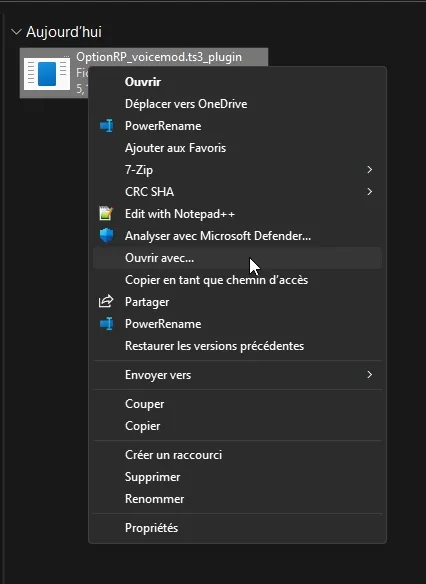 - Faites un clic droit > Ouvrir avec sur le plugin teamspeak OptionRP.